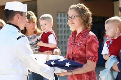 Bringing the ceremony to a close, Jaquette was presented a flag in memory of her husband followed by some concluding comments by Ducker who said, “This is a solemn occasion that underscores Mulrennan Middle School’s commitment to patriots who serve our nation and community, both in and out of uniform.”