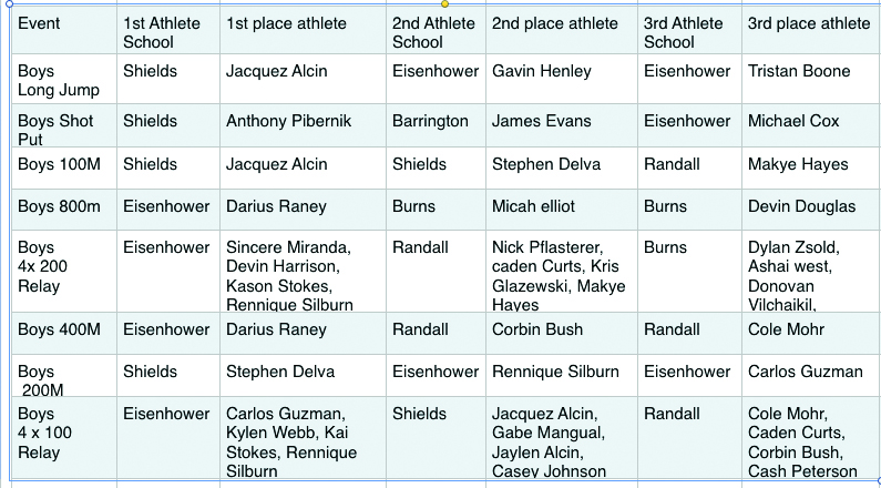 Sports Connection: Shields, Eisenhower Boys Show Strength At Six-Way Fall Cluster Track Meet Hosted By Randall Middle School